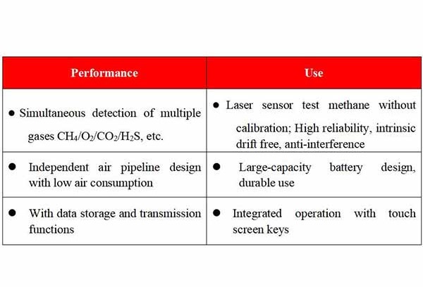 MGA1000 adopts the advanced photoelectric sensing principle to realize the detection and analysis of methane (CH4), oxygen (O2), carbon dioxide (CO2), hydrogen sulfide (H2S) and other gases.