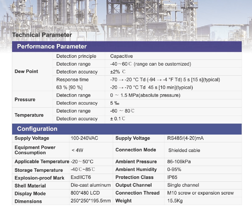 The precision Dew Point Measurement DP1000 can quickly and accurately measure the pressure, temperature and dew point of the gas within the dew point temperature range of -40 ~ 60 ° C. It has the advantages of simple operation, insensitive to condensation, high sensitivity, fast response, long service life and easy maintenance features. For the majority of enterprises, it has solved major problems in the application of process detection and process control in production.